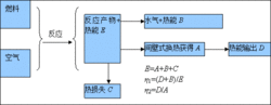 圖中:反應產物熱能E,熱損失C,水氣熱能B,間壁式換熱輸入A,熱能輸出D,則: